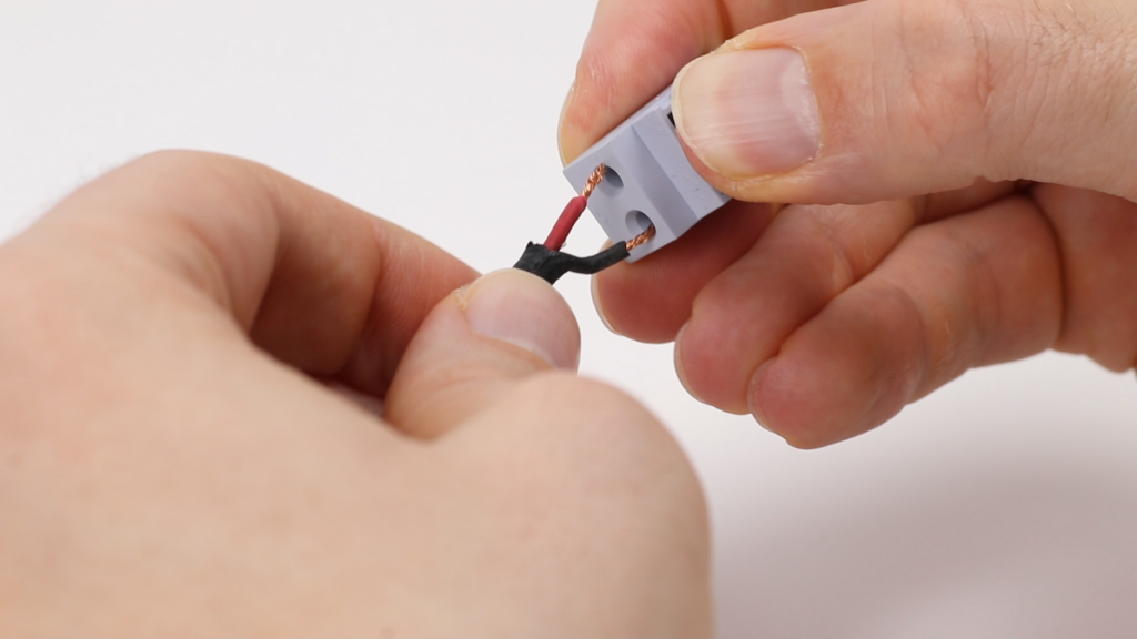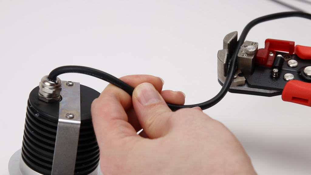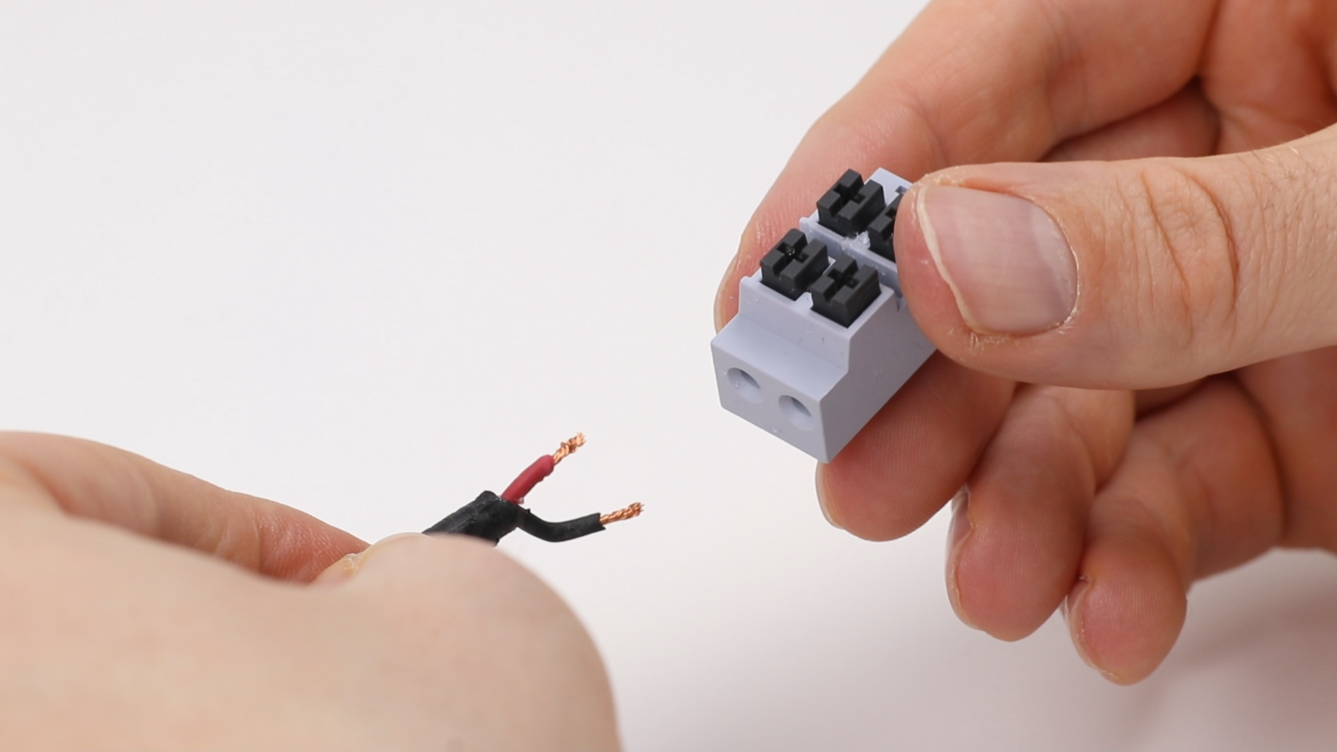 Insert the luminaire cable into the supplied terminal block – always use the provided connector